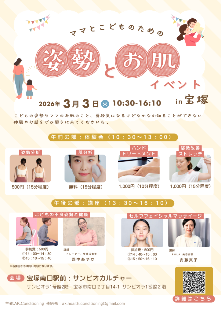 宝塚市逆瀬川駅から徒歩1分にあるシェアサロンにて、 宝塚では珍しい女性トレーナーがトレーニング指導やケアを提供いたします。指導歴は14年でトレーナーの国際資格を初め、国家資格である管理栄養士など保有資格多数所持。姿勢や動作から美しい身体づくりを目指し、優しく丁寧にサポートさせていただきます。 詳しくはこちら