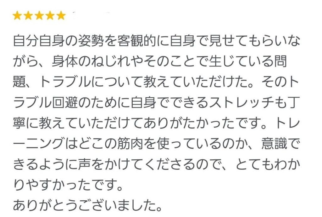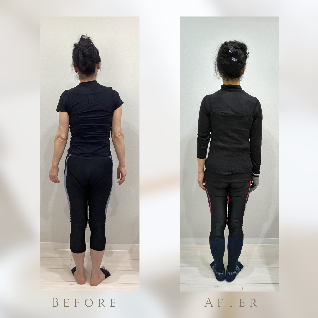 姿勢改善・機能改善・不調改善などの様々なお悩みを解決され、スタイルなどの見た目だけでなく、肩こり・腰痛・冷え性などの不調の改善もされ、健康的に身体を整えられました。